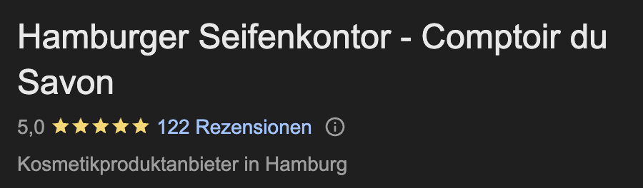 Alle Seifen werden nach dem französischen Reinheitsgebot von 1688 gefertigt. Das ist so etwas wie das deutsche Reinheitsgebot für Bier und besagt, dass Seifen nur aus hochwertigen pflanzlichen Ölen produziert werden dürfen. Und so bestehen die Seifenkontor-Artikel aus Oliven- und Kokosöl, Bio-Sheabutter und Duftstoffen aus der Provence. Kurths Motto: 'Hanseatische Pflege mit provenzalischer Seele.' Der 'Seifenmann', wie er gern genannt wird, ist außerdem ein Verfechter von Zero Waste - und so kommen sämtliche Produkte 'nackt' daher. ,Nachhaltigkeit darf gerne sexy sein', sagt Kurth. 'Eine feste Seife fettet die Haut immer besser zurück als eine flüssige Seife.' Deshalb gibt es 27 feste Seifen für den ganzen Körper, Duschseife an der Schnur, Seifenanker und maritime Seifen mit markigen Sprüchen. Feste Shampoos, Haarseifen und nachhaltige Haushaltspulver wie das 'Alles-Sauber-Pulver' runden das umfangreiche Sortiment ab. Ein Besuch lohnt sich also immer.' Hamburger Morgenpost, JANINA HEINEMANN (Autorin), Rubrik SHOPPING, Samstag, 19.06.2021, Seite 50f.