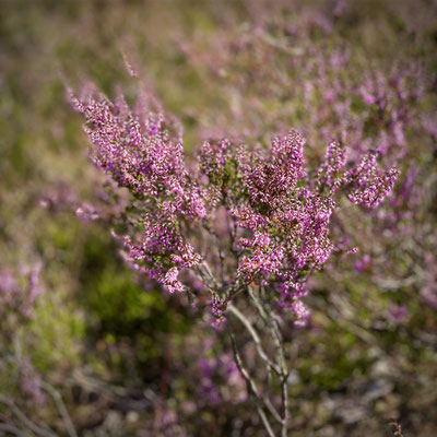Besenheide (Calluna vulgaris), auch Heidekraut genannt. Wobei der Begriff Kraut eher irreführend ist, denn botanisch gesehen handelt es sich um einen Strauch.